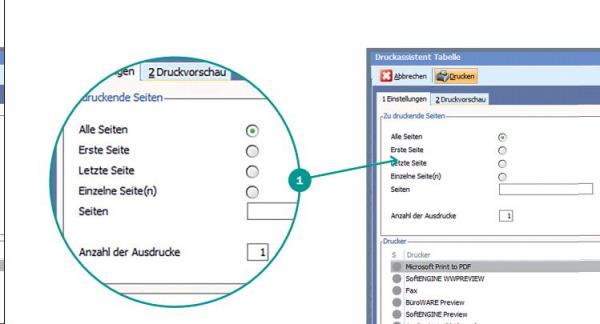Ab Version 5.58 steht Ihnen in jeder Tabelle die Funktion Tabellendruck zur Verfügung, in der Sie selbst entscheiden und einstellen können welche Spalten Sie drucken möchten, welche Darstellung ( Hoch-/Querformat ) aufgebaut werden soll oder ob Sie Summieren möchten: